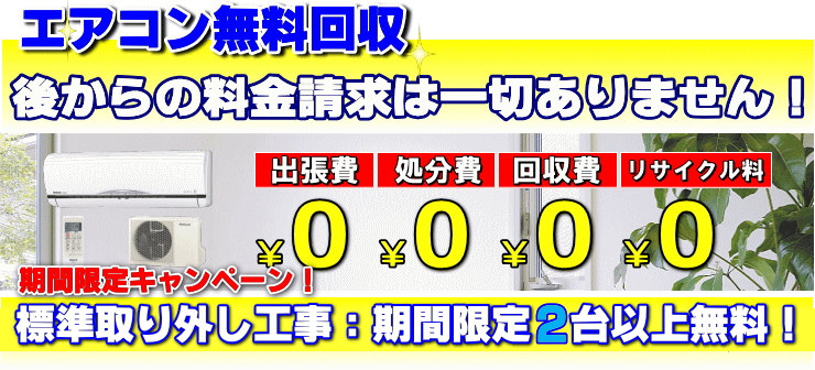 取り外し料金は標準工事のみ 標準取り外し2台以上で無料キャンペーン中!※1台は料金2000円!